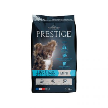 (χαμηλή σε θερμίδες) Η παρουσία ινών (συνταγή χαμηλής περιεκτικότητας σε θερμίδες) βοηθά στη διατήρηση του ιδανικού βάρους χωρίς να μειώνεται ο όγκος του γεύματος (20% λιγότερη ενέργεια σε σύγκριση με το Prestige Adult Mini).